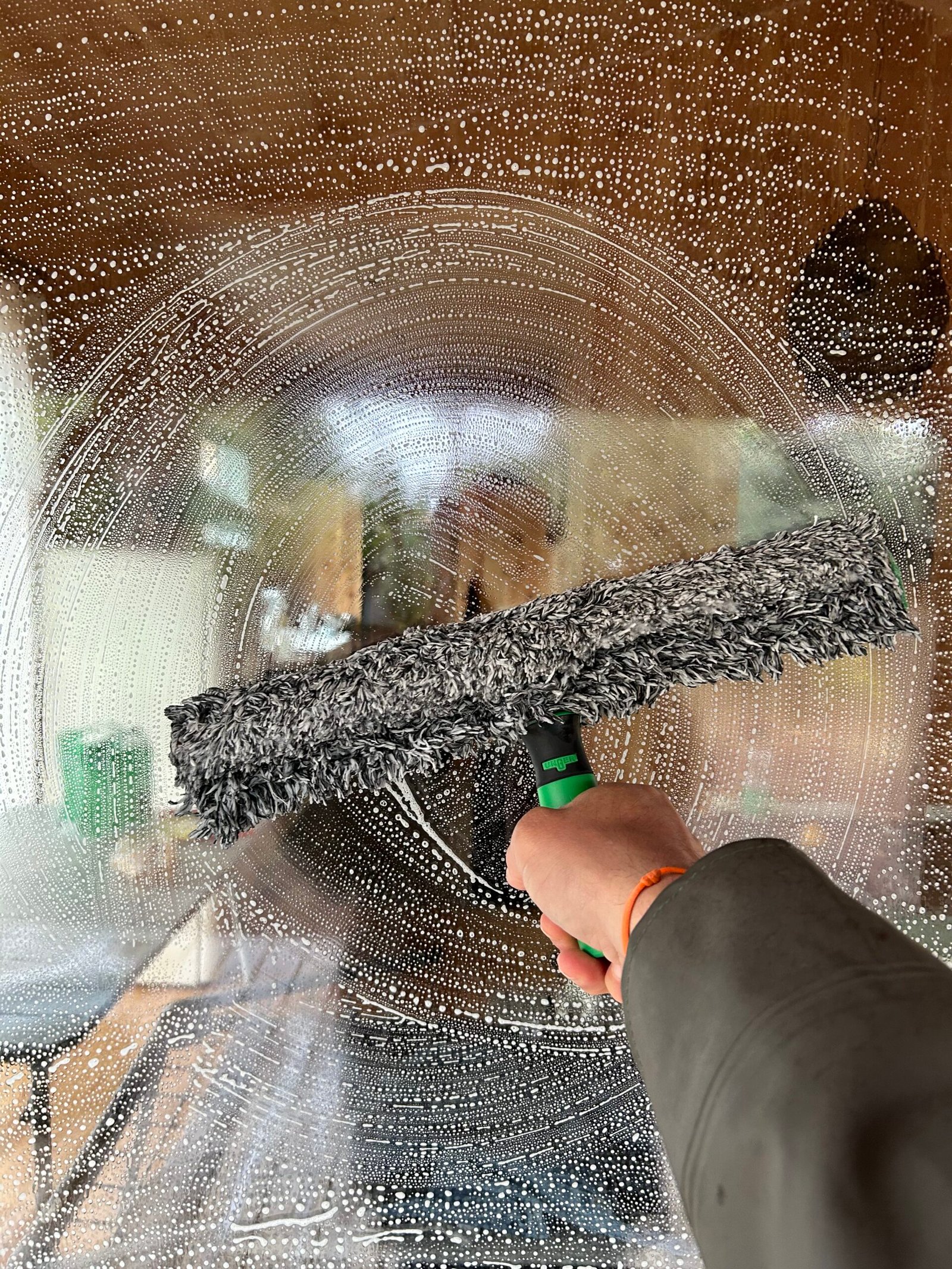 Le nettoyage des vitres avec une raclette est la méthode la plus efficace pour obtenir un résultat impeccable et sans traces. Après avoir appliqué une solution nettoyante adaptée à l’aide d’un mouilleur, la raclette est utilisée du haut vers le bas en gestes réguliers, permettant d’éliminer l’eau et les impuretés en un seul passage. Cette technique garantit des vitres parfaitement propres, tout en préservant leur brillance et leur transparence, pour une vue nette et professionnelle.